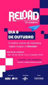 Reload 2022: evento do Sebrae sobre marketing digital está com inscrições abertas em Uberaba e conta com o apoio da FACTHUS.